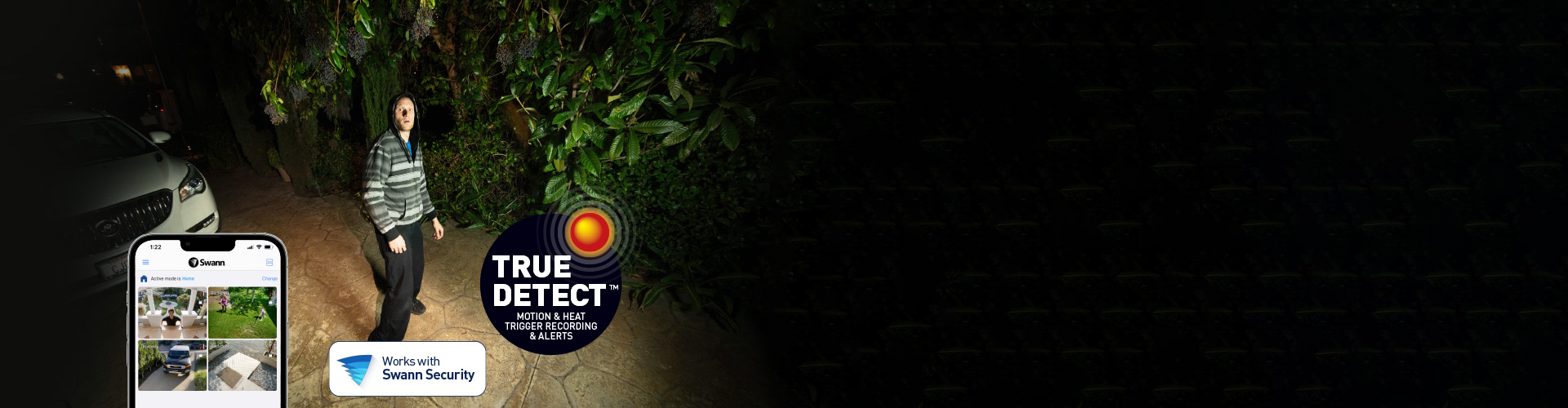With Swann's True Detect, warm objects like people & cars can trigger the lights, siren, push notifications & recording with fewer false alarms to worry about.