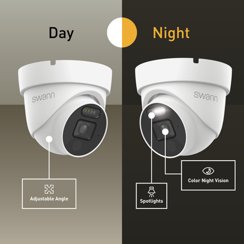 Never miss a thing! Night2Day™ provides rich video quality & color night vision up to 32ft (10m), that turns night into day.