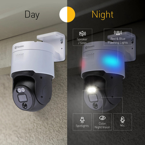 Enhance your security with Swann’s 5 Camera 8 Channel 4K Ultra HD Professional NVR Security System. This system delivers stunning 4K resolution, True Detect™ heat and motion-sensing technology, and Night2Day™ color night vision. The package includes four 4K bullet cameras and one pan-tilt camera, all equipped with spotlights, sirens, and sensor warning lights for enhanced deterrence. The 2TB HDD provides extensive storage. Manage and access footage remotely via the Swann Security App.