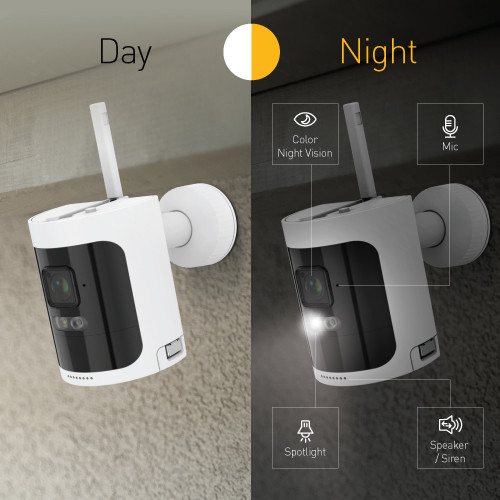 Controllable spotlights ensure you can see people, objects & activity in color at any hour.