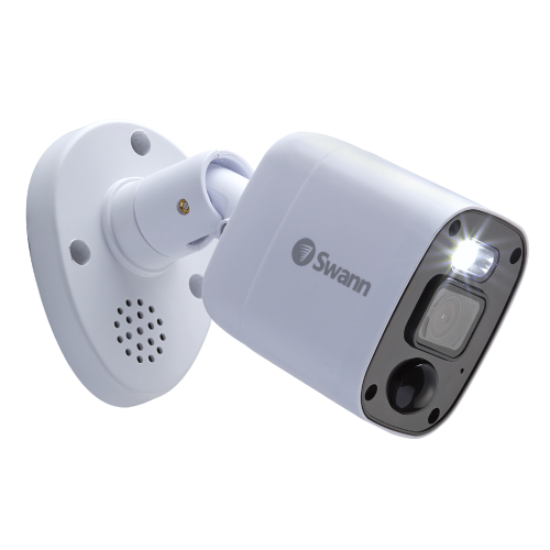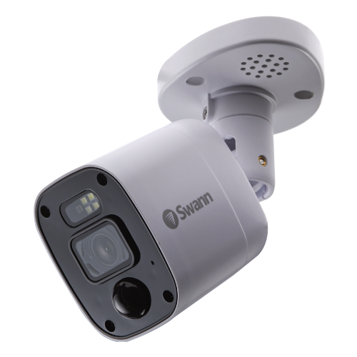 Enhance your security system with Swann’s 4K Ultra HD Bullet Camera. This camera offers sharp 4K resolution, True Detect™ heat and motion-sensing technology, and Night2Day™ color night vision. Equipped with a built-in siren, sensor warning lights, and a microphone for audio recording, it provides comprehensive security. Its weatherproof design ensures durability for outdoor use. The camera is compatible with Swann DVR systems and can be managed via the Swann Security App for remote access.