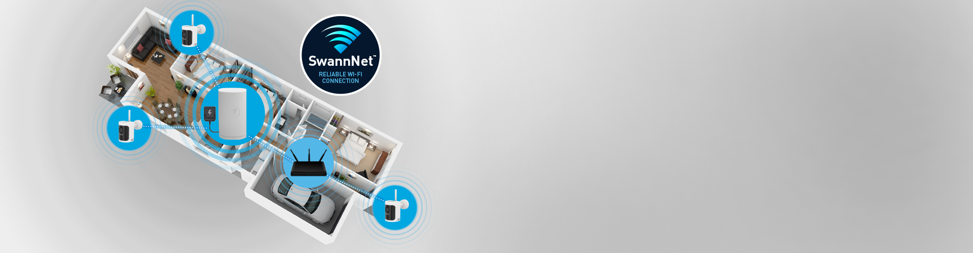 SwannNet™ ensures you have the strongest available Wi-Fi connection for each camera from the Wi-Fi NVR or your internet router.