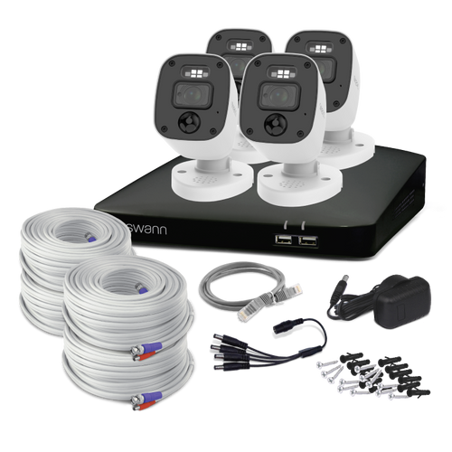 DVR-5680 with 1TB HDD & 4 x 4K SwannForce Bullet Cameras PRO-4KMQB with Red & Blue Flashing Lights, Spotlights, Sirens, Night2Day Color Night Vision & More